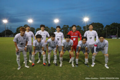 試合日 9月1日(日) 14:00キックオフ 会場 柳島スポーツ公園総合競技場(人工芝) 結果 東邦チタニウム 1 (前半:0-0/後半:1-0) 0 桐蔭横浜大学FC…